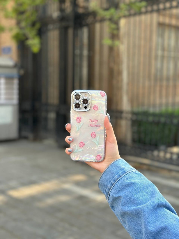 کاور قاب تک مدل ماربل یخی گل لاله 🐰 🌷 مناسب برای گوشی موبایل اپل